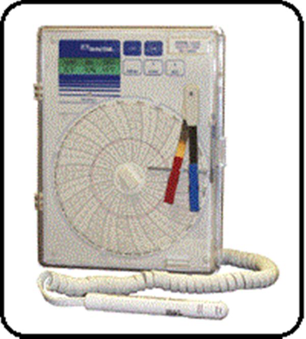 DeltaTRAK迪特愛的溫度/濕度/露點圓圖記錄儀, 型號14013(110V)和14014(220V), 提供溫度和相對濕度同步監(jiān)測。它有四個不同的圖表速度:12小時、24小時、7天及31天。圖表有oF或oC兩種。記錄范圍為-30℃?50°C,相對濕度10%~90%。該記錄儀也可計算露點。有一個易閱讀的液晶顯示屏和全功能的溫度超范圍警報特點。